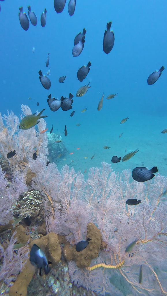 Une fois sous l’eau, j’ai eu l’impression que les rôles étaient inversés : c’était comme si nous étions les poissons et qu’ils étaient les humains qui nous observaient dans leur habitat naturel. La vie marine était vibrante et abondante, et j’étais complètement émerveillée. J’ai même oublié quoi faire de mes mains tellement j’étais captivée par les poissons. Ils se déplaçaient en harmonie, presque comme s’ils dansaient ensemble. C’était magique. Plonger avec Nico Dives Cool m’a donné une toute nouvelle perspective sur le monde sous-marin.